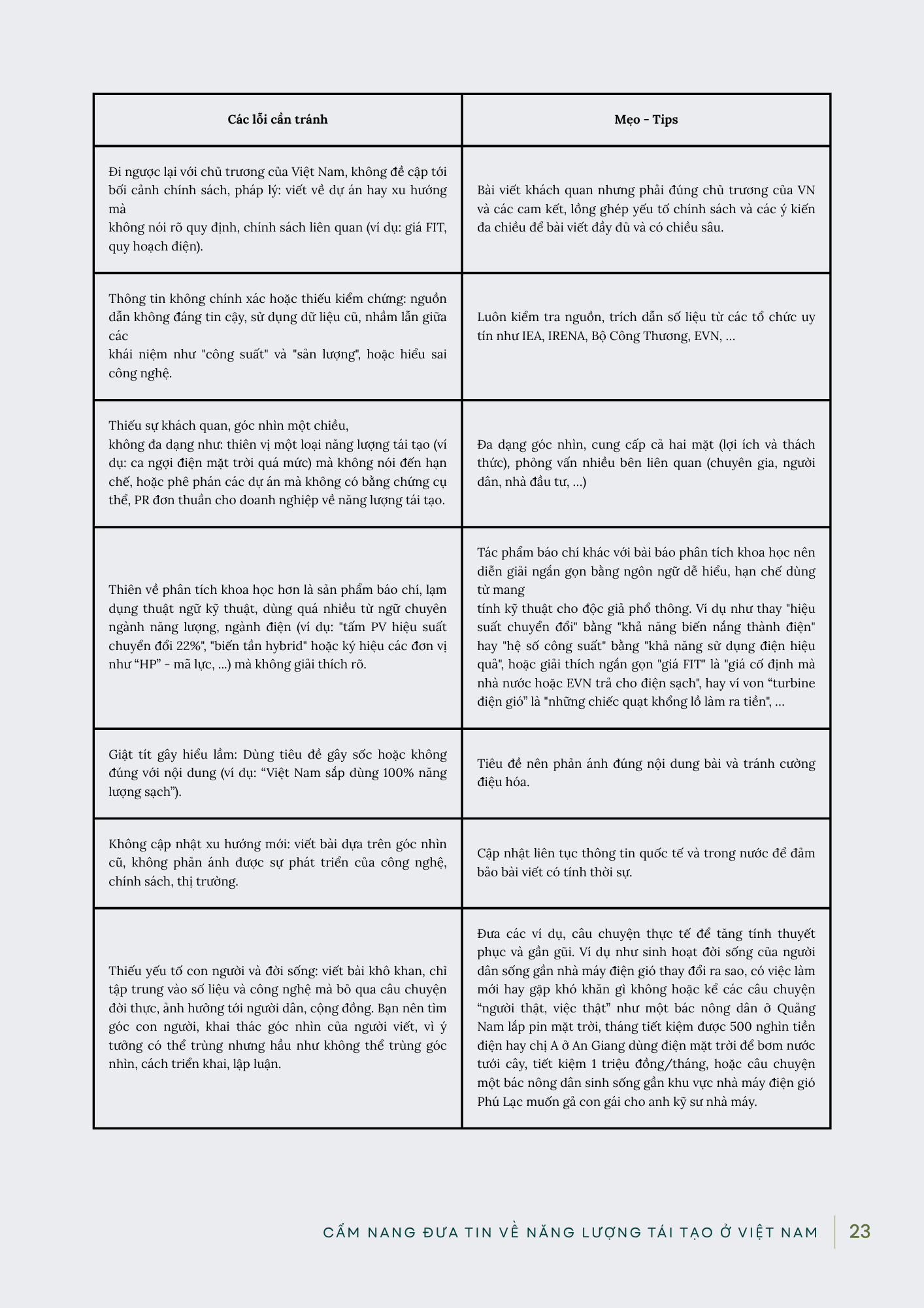 CẨM NANG ĐƯA TIN VỀ NĂNG LƯỢNG TÁI TẠO Ở VIỆT NAM